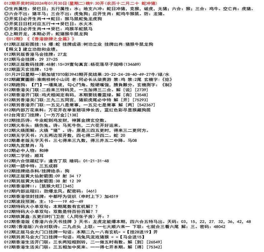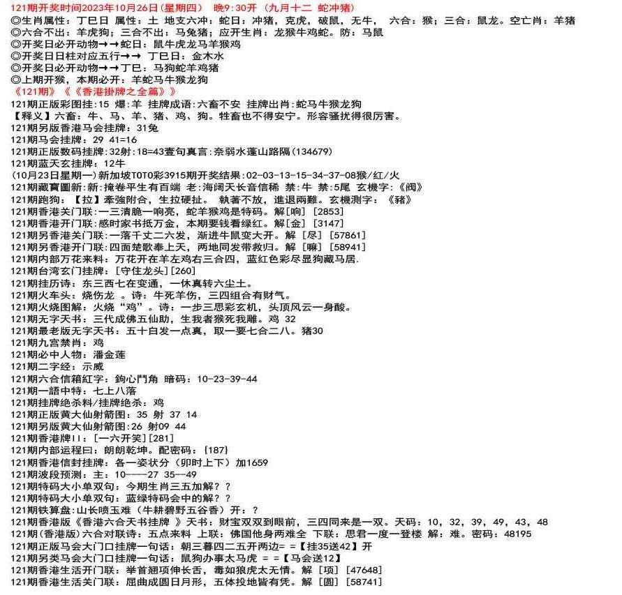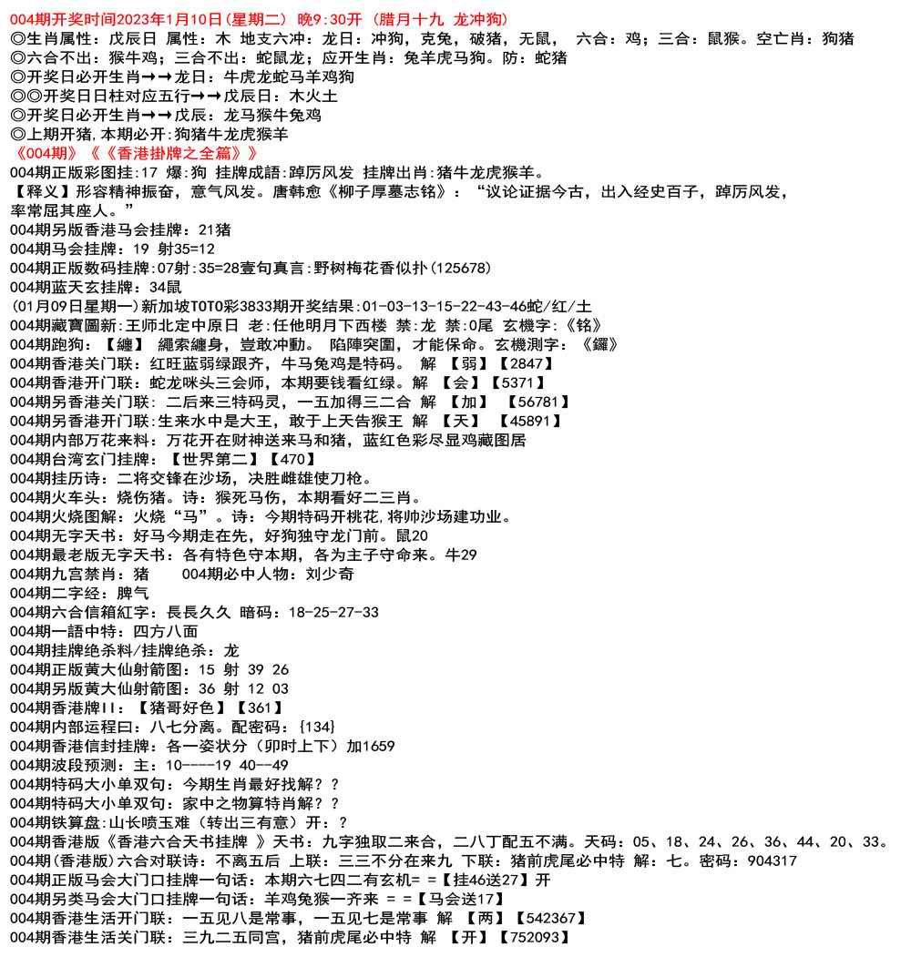 (12月26日星期一)新加坡TOTO彩3829期开奖结果:03-10-31-32-44-47特41狗/蓝/水