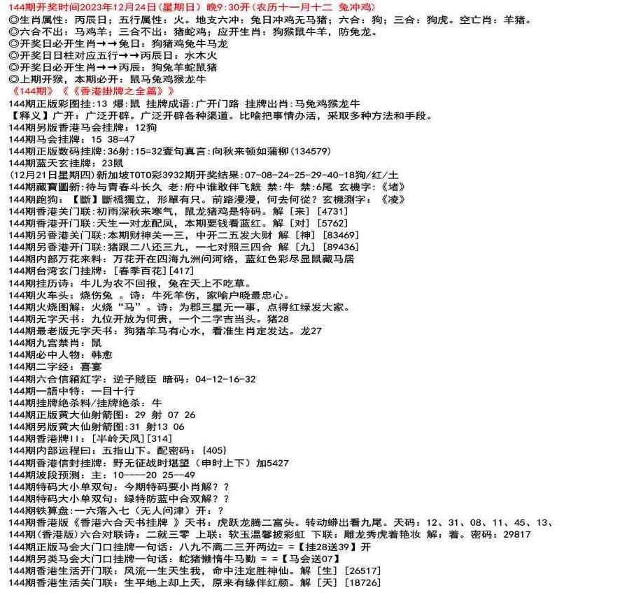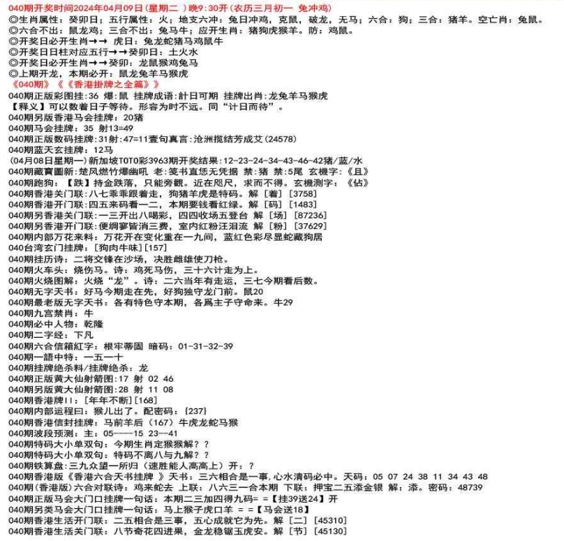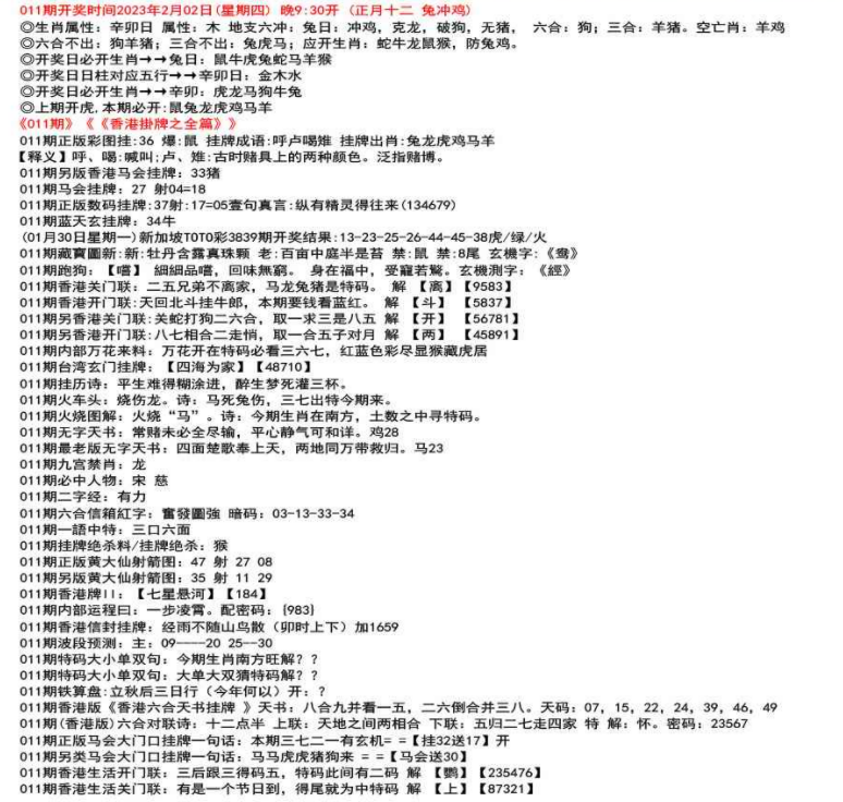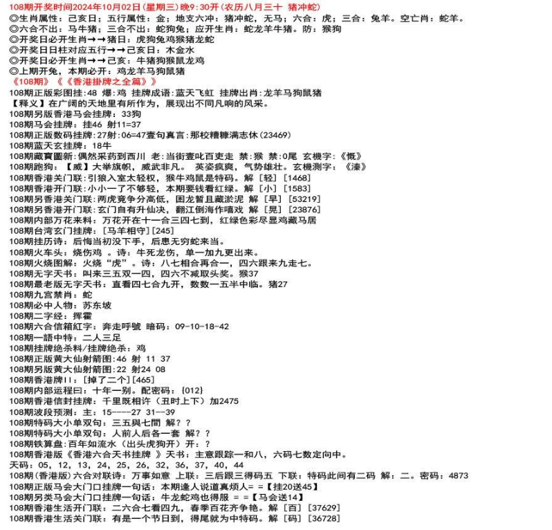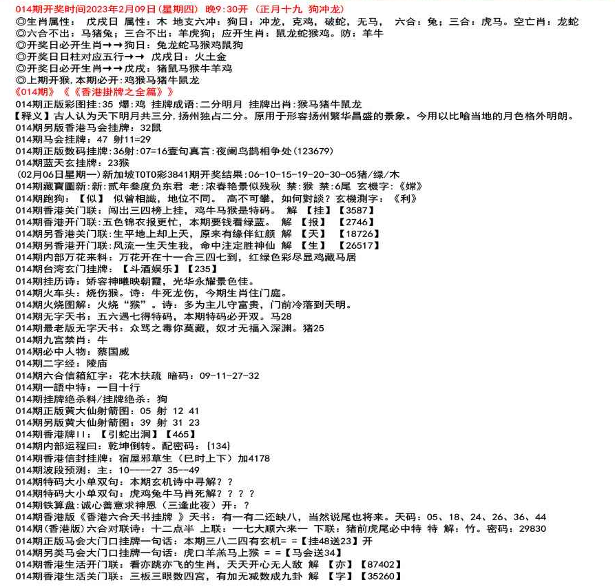 ◎六合不出:牛龙猴;三合不出:鼠蛇鸡;应开动物:羊兔猪虎狗。防:鼠马
