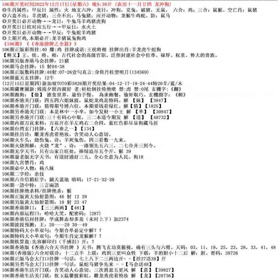 111期另类马会大门口挂牌一句话:狗龙鸡鼠争先来 = =【马会送26】