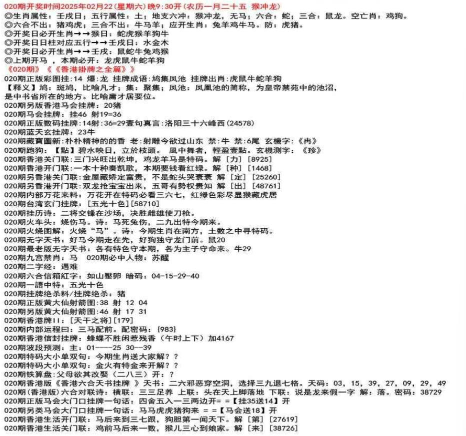 111期香港牌II:【天干之将】【179】