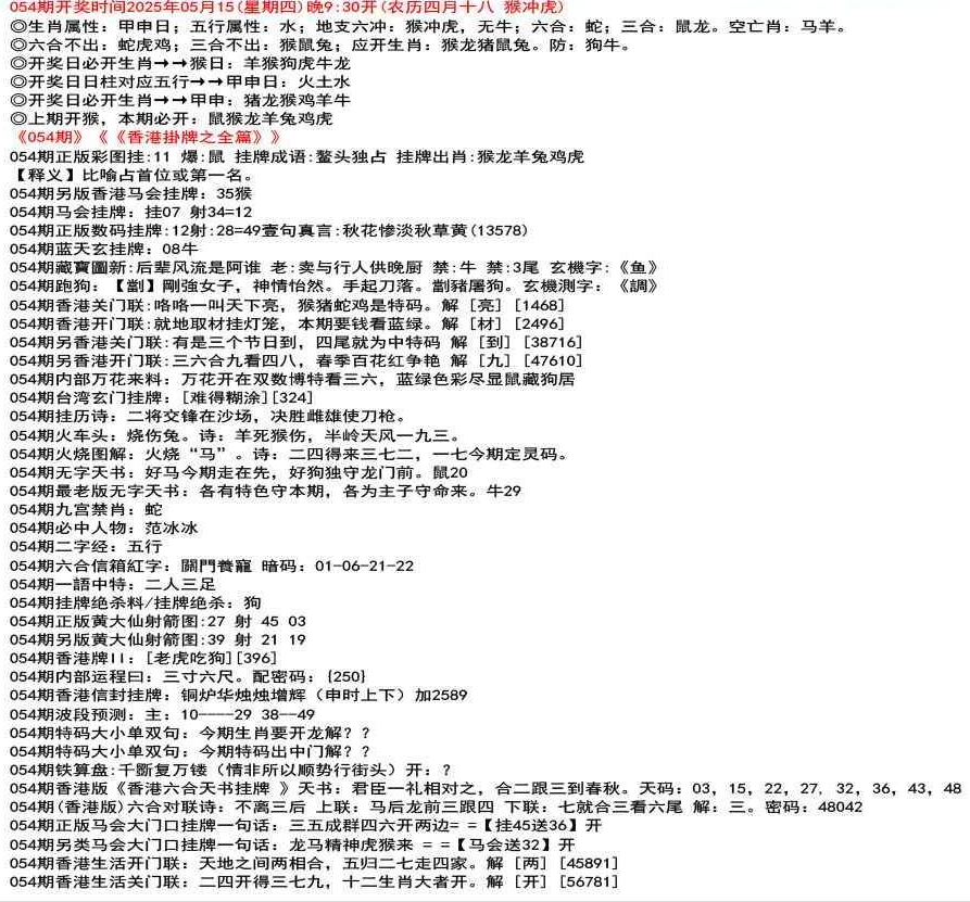 111期内部万花来料:万花开在特码必看三六七,红绿色彩尽显猴藏虎居