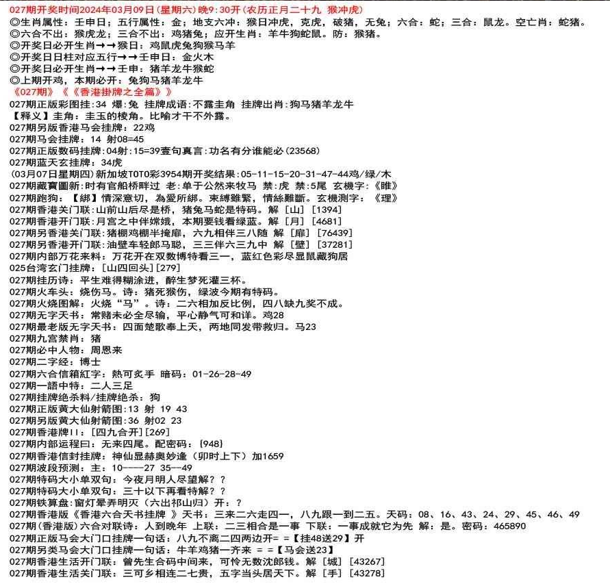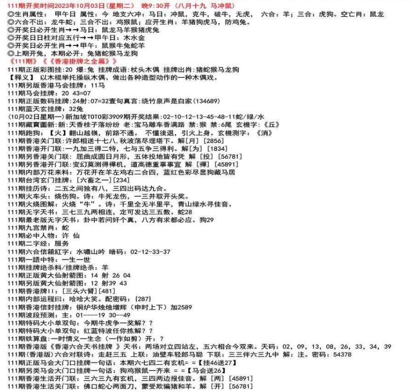 111期香港版《香港六合天书挂牌 》天书:二六邪恶穿空洞,选择三九退七格。天码:03,15,39,27,09,29,49