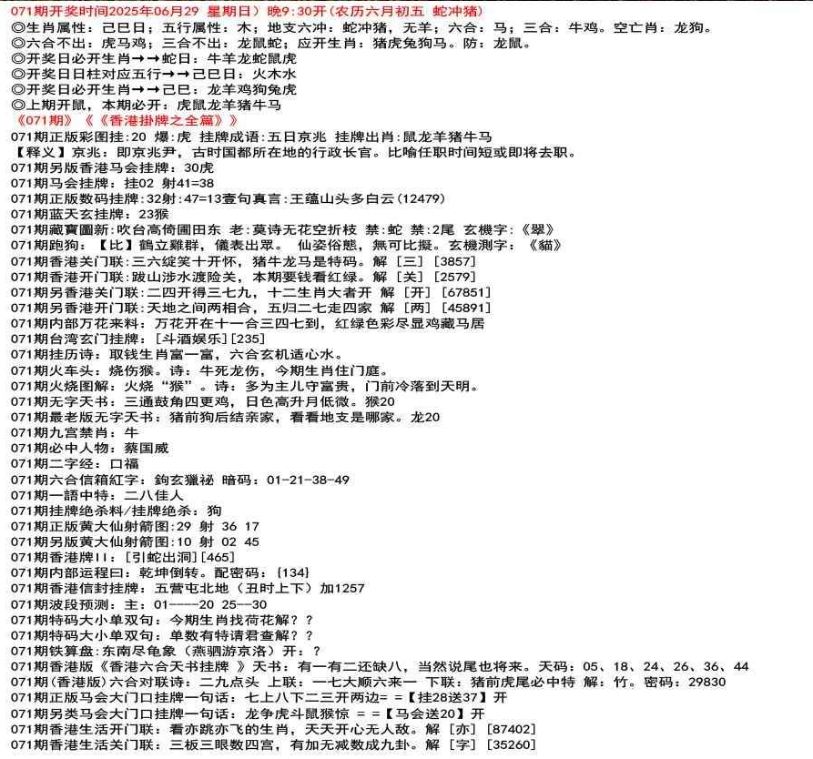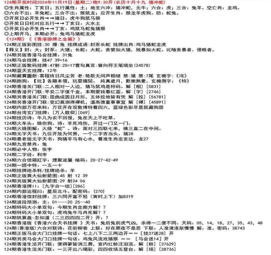 111期(香港版)六合对联诗:三三足养 上联:头在天上脚落地 下联:说是龙来假一字 解:落。密码:38729