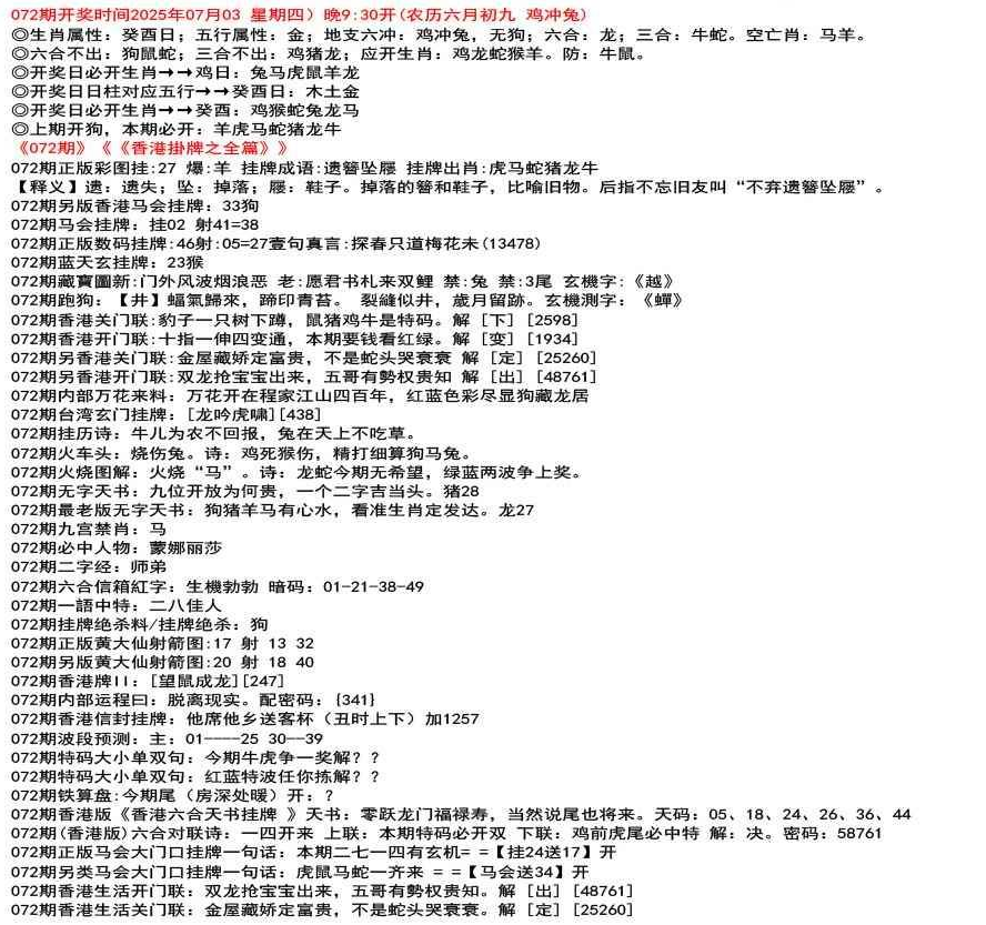 111期香港生活关门联:鸡前马后来一数,猴儿三心到娘家 解 【来】【38726】